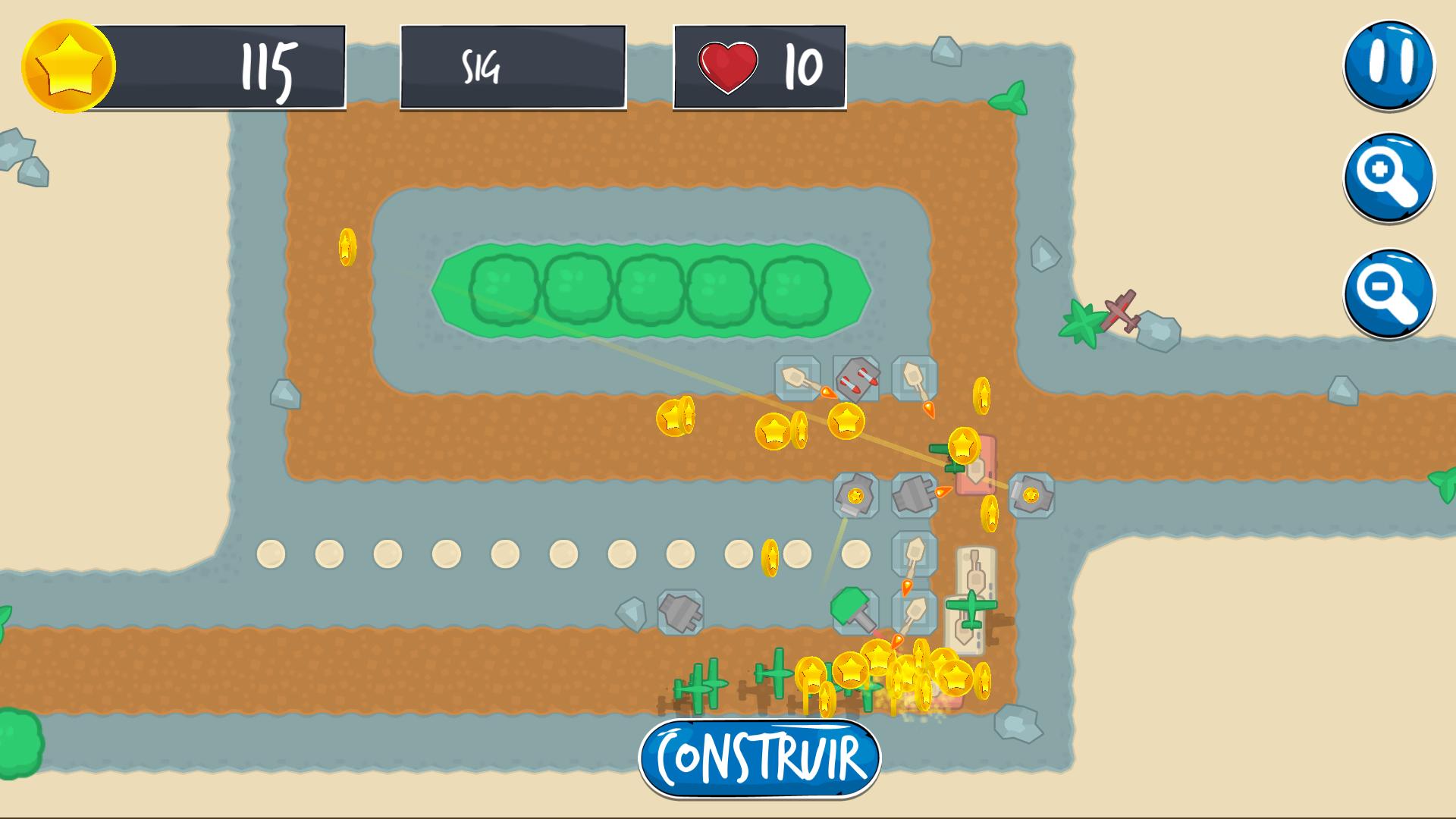 • Recoja monedas para comprar más torretas.
